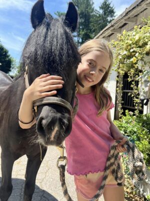 We tailor each day based on the campers’ interests and abilities, as well as the weather. Camp activities include: riding lessons, horse care lessons, crafts, nature hikes, games, demo rides featuring our advanced riders, and guest speakers.